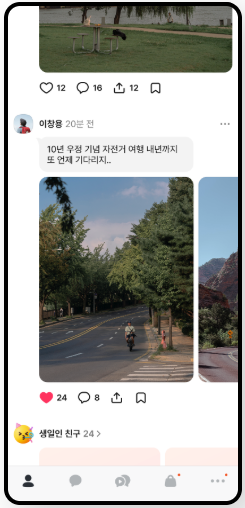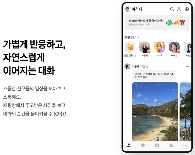 - 친구 탭의 피드화 → 소셜 네트워크 확장
